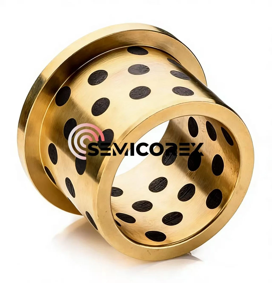 సెమికోరెక్స్ గ్రాఫైట్ స్వీయ-లూబ్రికేటింగ్ బుషింగ్లు కూపర్ అల్లాయ్ మ్యాట్రిక్స్ మరియు సాలిడ్ గ్రాఫైట్ ప్లగ్లతో కూడి ఉంటాయి. గ్రాఫైట్ స్వీయ-లూబ్రికేటింగ్ బుషింగ్ల ఘర్షణ ఉపరితలం క్రమబద్ధంగా పంపిణీ చేయబడిన బహుళ ఖచ్చితత్వ-యంత్ర రంధ్రాలను కలిగి ఉంటుంది, ప్రతి ఒక్కటి ప్రత్యేకంగా రూపొందించబడిన ఘన గ్రాఫైట్ ప్లగ్లతో నిండి ఉంటుంది. ఆపరేషన్ సమయంలో, గ్రాఫైట్ కణాలు క్రమంగా రంధ్రాల నుండి విడుదల చేయబడతాయి మరియు షాఫ్ట్ మరియు బుషింగ్ మధ్య ఘర్షణ ఉపరితలానికి బదిలీ చేయబడతాయి, ఇది స్థిరమైన కందెన చలనచిత్రాన్ని సృష్టిస్తుంది. ఈ గ్రాఫైట్ లూబ్రికేటింగ్ ఫిల్మ్ డైరెక్ట్ మెటల్-ఆన్-మెటల్ సంబంధాన్ని తొలగిస్తుంది, ఘర్షణ గుణకాన్ని గణనీయంగా తగ్గిస్తుంది మరియు కాంపోనెంట్ వేర్ను తగ్గిస్తుంది.