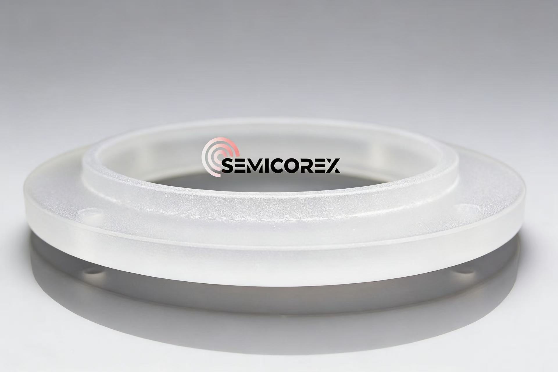 క్వార్ట్జ్ ఫోకస్ రింగులుపొడి ఎచింగ్ ప్రక్రియల కోసం ప్రత్యేకంగా రూపొందించబడ్డాయి. ప్లాస్మాను పరిమితం చేయడానికి మరియు సజాతీయంగా మార్చడానికి అవి సాధారణంగా పొరల చుట్టూ అమర్చబడి ఉంటాయి, ఇది పొరపై చెక్కడం రేటు మరియు నమూనా యొక్క ఏకరూపతను ప్రభావవంతంగా నిర్ధారిస్తుంది. ఈ ఆపరేటింగ్ వాతావరణానికి ప్లాస్మా తుప్పుకు బలమైన ప్రతిఘటనను కలిగి ఉండటానికి క్వార్ట్జ్ ఫోకస్ రింగ్లు అవసరం, చాలా ఎక్కువ డైమెన్షనల్ ఖచ్చితత్వం మరియు అసాధారణమైన డిశ్చార్జెస్ లేదా కణాల ఉత్పత్తిని నిరోధించడానికి మృదువైన ఉపరితల ముగింపు.