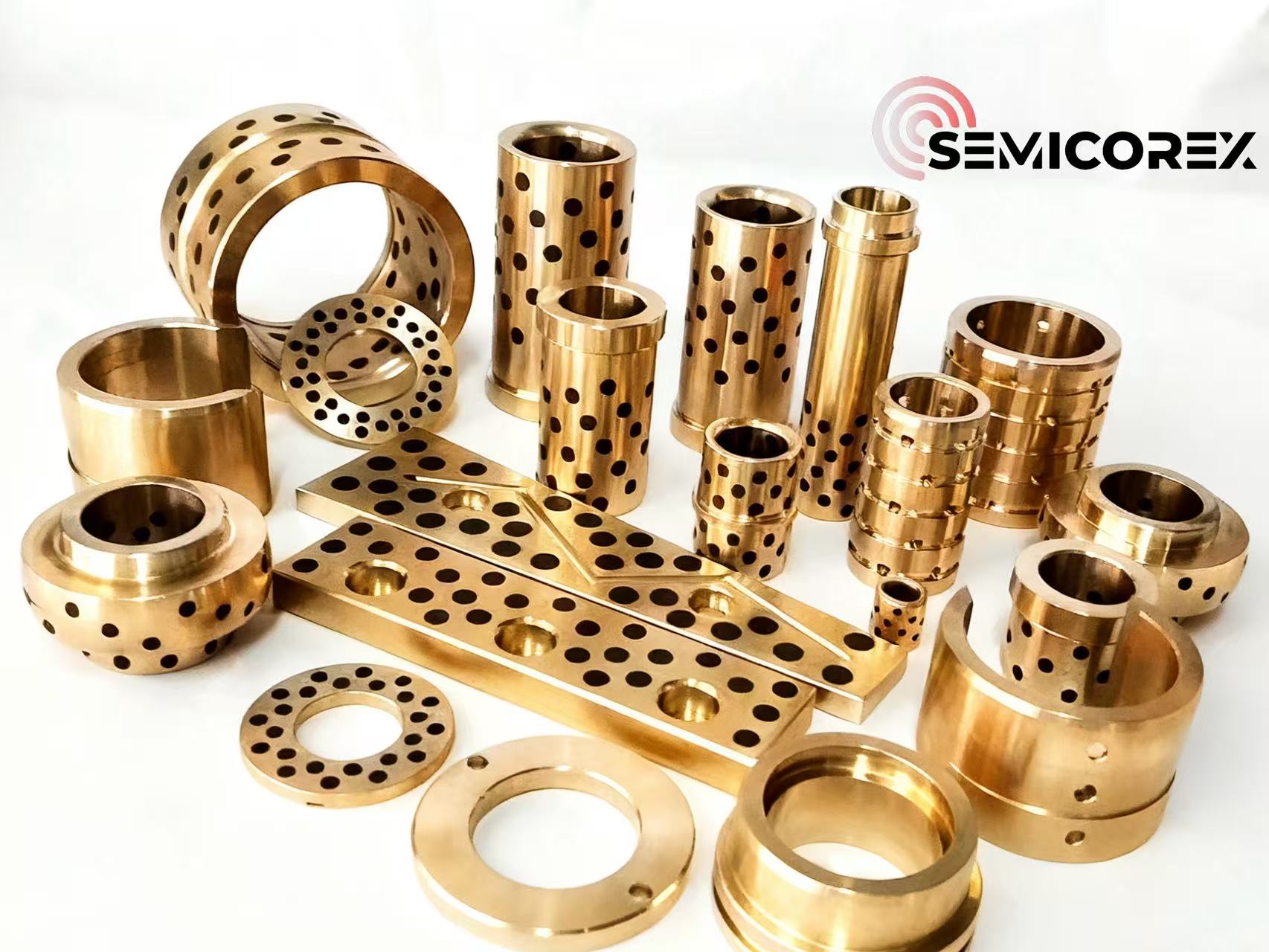 సెమికోరెక్స్స్వీయ కందెన బేరింగ్లుస్వీయ కందెన లక్షణాలతో ఉత్పత్తులు. బేరింగ్ బేస్ మరియు ఎంబెడ్డింగ్ యొక్క మెటల్ రాపిడి ఉపరితలంపై తగిన పరిమాణాల క్రమబద్ధంగా అమర్చబడిన రంధ్రాలను తెరవడం ద్వారా అవి తయారు చేయబడతాయి.గ్రాఫైట్ఘన కందెన వలె ప్రత్యేకమైన స్వీయ-కందెన లక్షణాలతో. అన్ని బేరింగ్ బేస్ ఉపరితలాలు యంత్రం. ఈ మ్యాచింగ్ ప్రక్రియ ఖచ్చితమైన బేరింగ్ కొలతలు మరియు సహనాలను నిర్ధారిస్తుంది, ఇది వాటి అప్లికేషన్లలో స్వీయ-కందెన బేరింగ్ల పనితీరుకు కీలకం. చక్కగా ప్రాసెస్ చేయబడిన మెటల్ ఉపరితలాలు కార్మికులకు భాగాలను ఇన్స్టాల్ చేయడం మరియు సమలేఖనం చేయడం సులభతరం చేస్తాయి, కార్యాచరణ సామర్థ్యాన్ని పెంచుతాయి మరియు ధరించే ప్రమాదాన్ని తగ్గిస్తాయి.